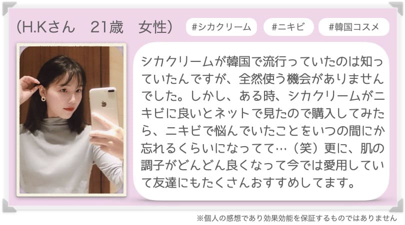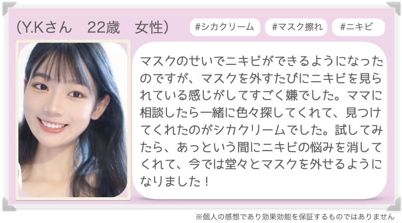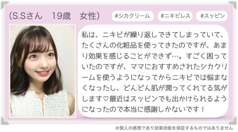 「シカクリームやばくない?すぐ消えたよ!」